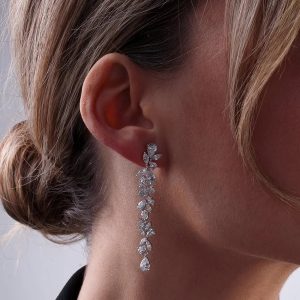 Largos, PendientesPendientes largos brillantes novia plata mujer. Las joyas de moda que harán que tu oreja brille como nunca antes lo había hecho. Pendientes largos de plata con un diseño floral descendiente adornado con circonitas blancas talla brillante y marquesa. Pieza muy elegante. ¡Ideal para lucir espectacular!128.00 €- Material: Plata de Ley 925
