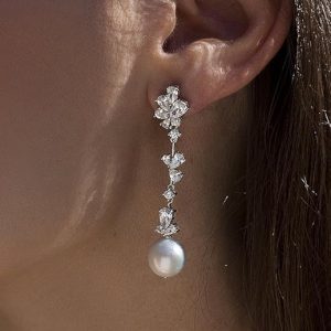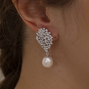 128.00 €Pendientes novia largos con circonitas y acabada con una perla en motivos florales