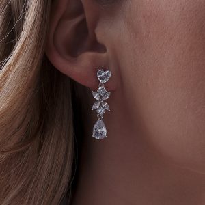 128.00 €Pendientes largos brillantes novia plata diseño floral