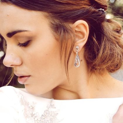 Pendientes de novia lágrima en plata