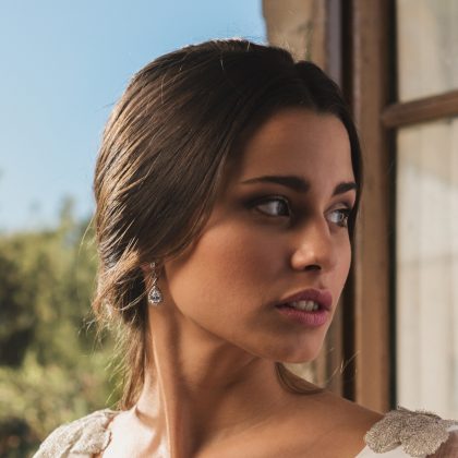 Pendientes de novia pequeños en plata con lágrima