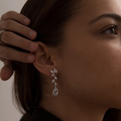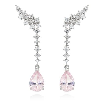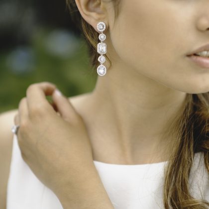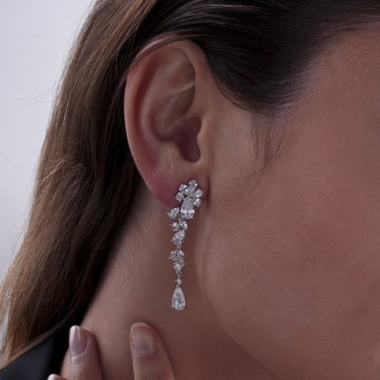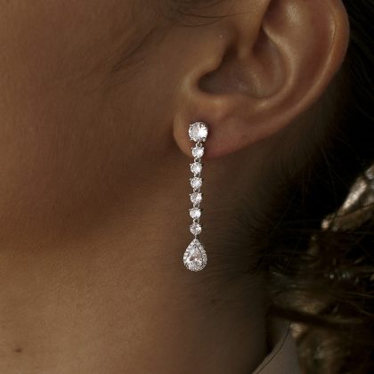 Pendientes largos de novia en plata estilo lineal con circonitas