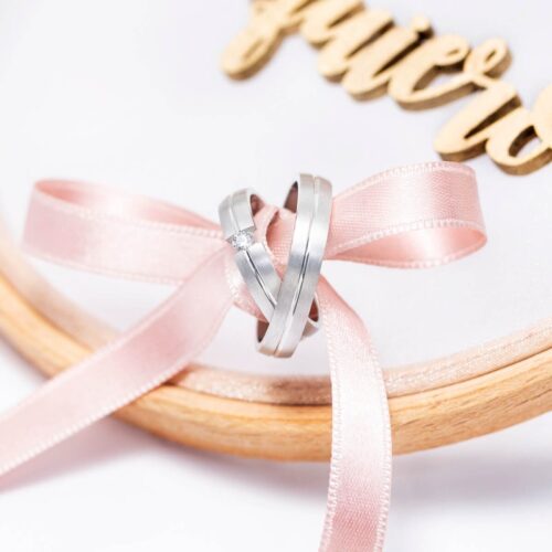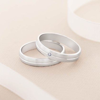 Alianza de boda Platino Media caña 4,00 mm con diamante